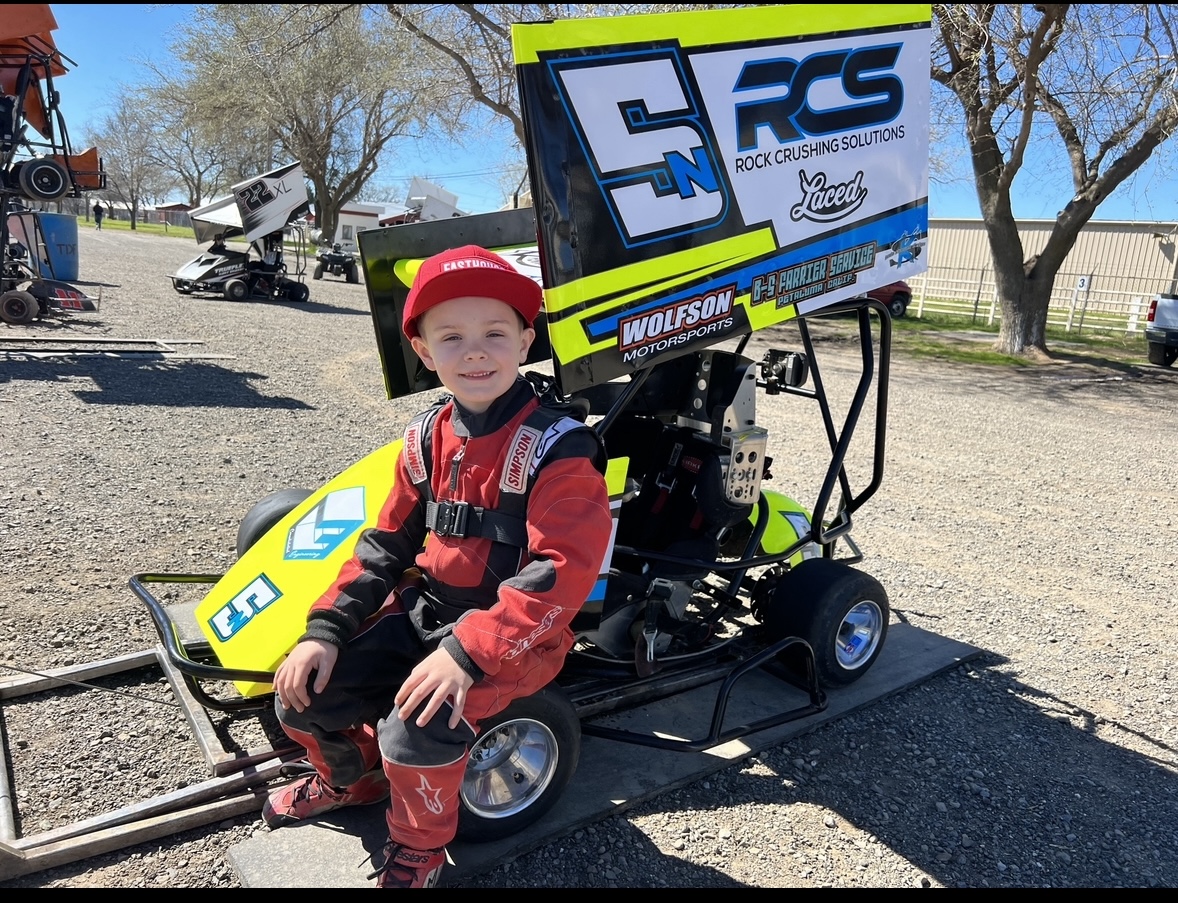 My name is Nixon, I am a five-year-old outlaw cart driver out of Suisun city CA , I love to go fast and I Don’t believe in breaks…. I started racing outlaw karts 11/22 when I was 4.